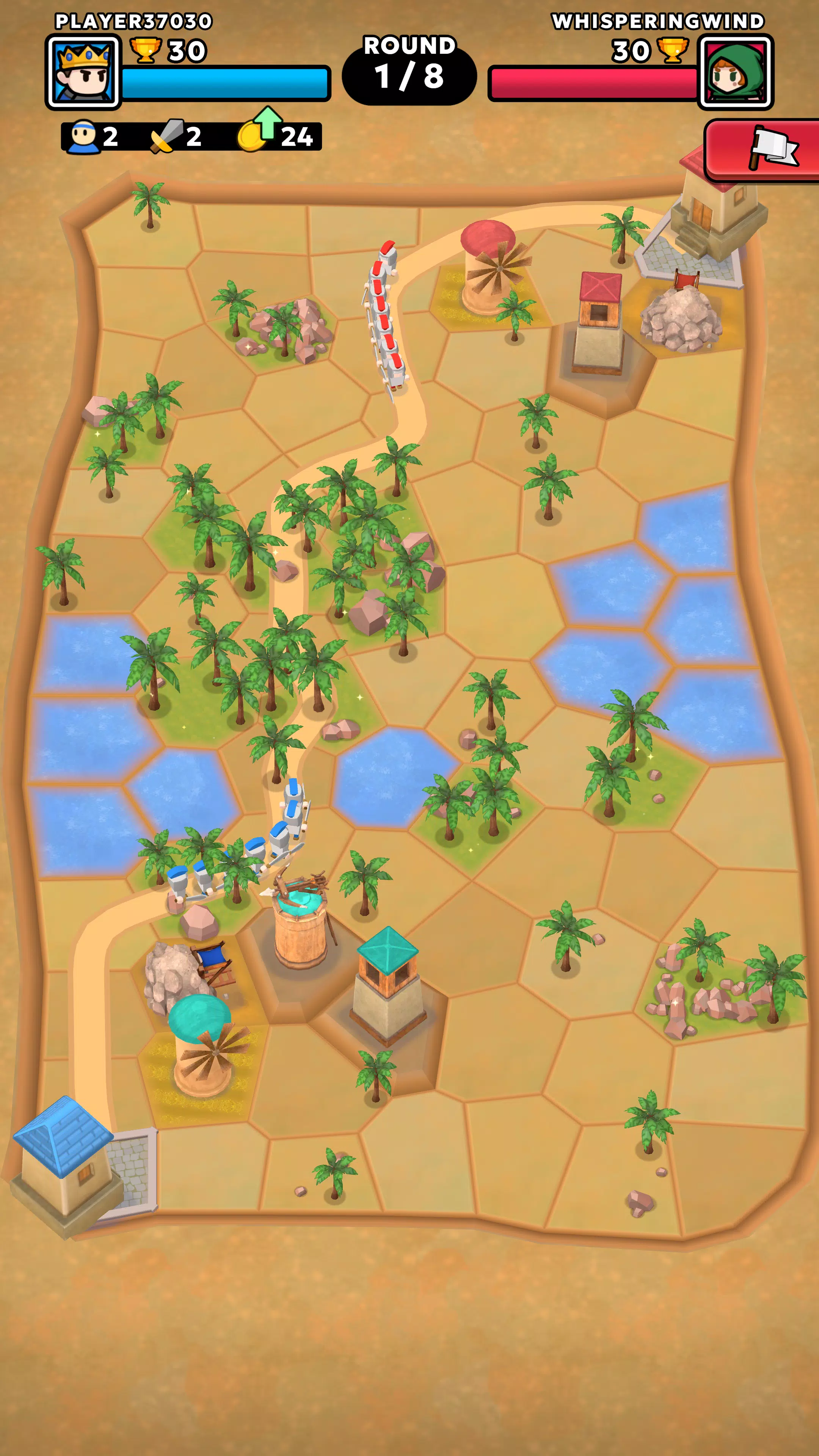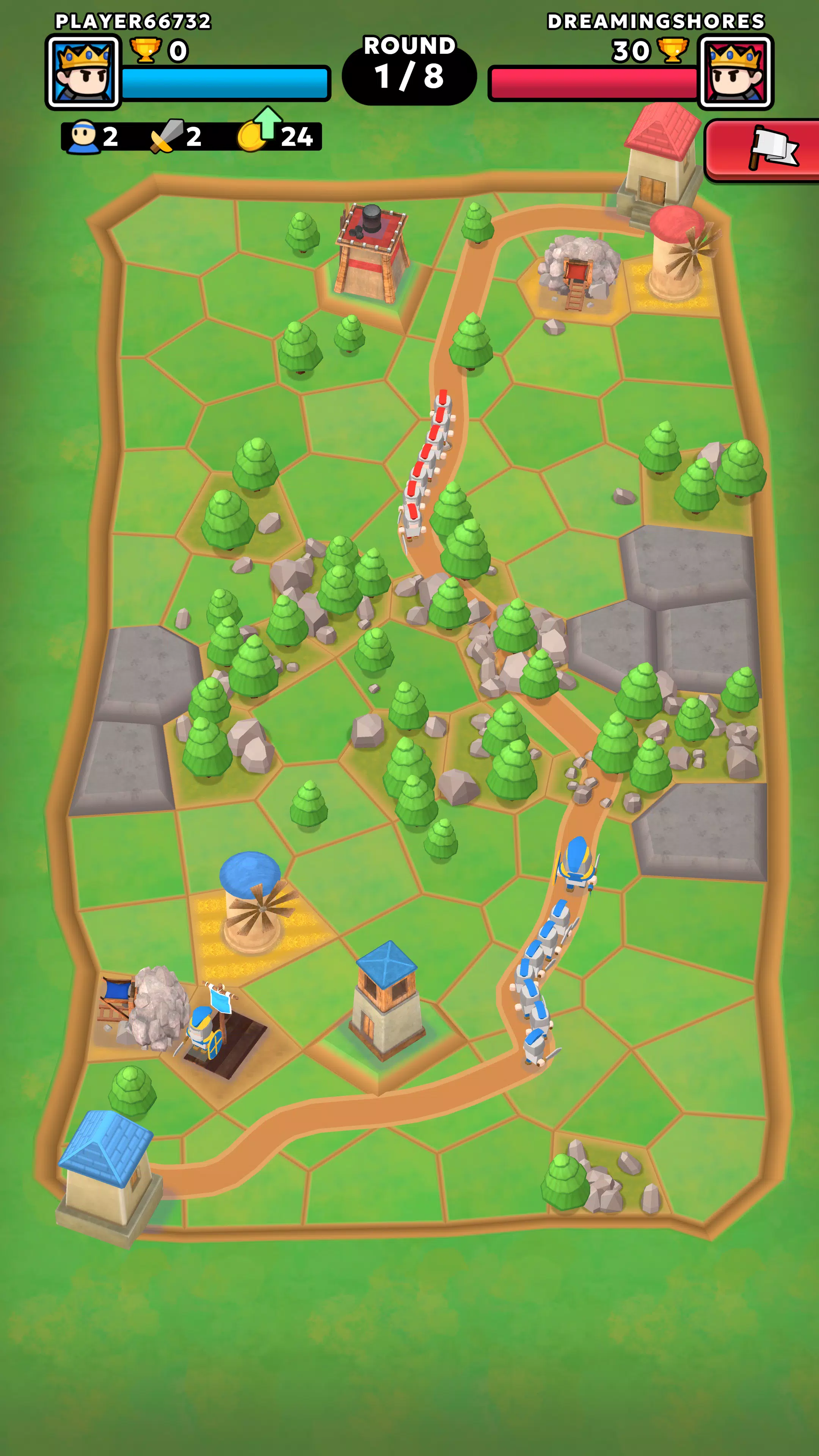 你还可以选择控制战场,扩展连接你王国和敌国的道路,这样敌军就无法长时间抵挡你的防御塔。