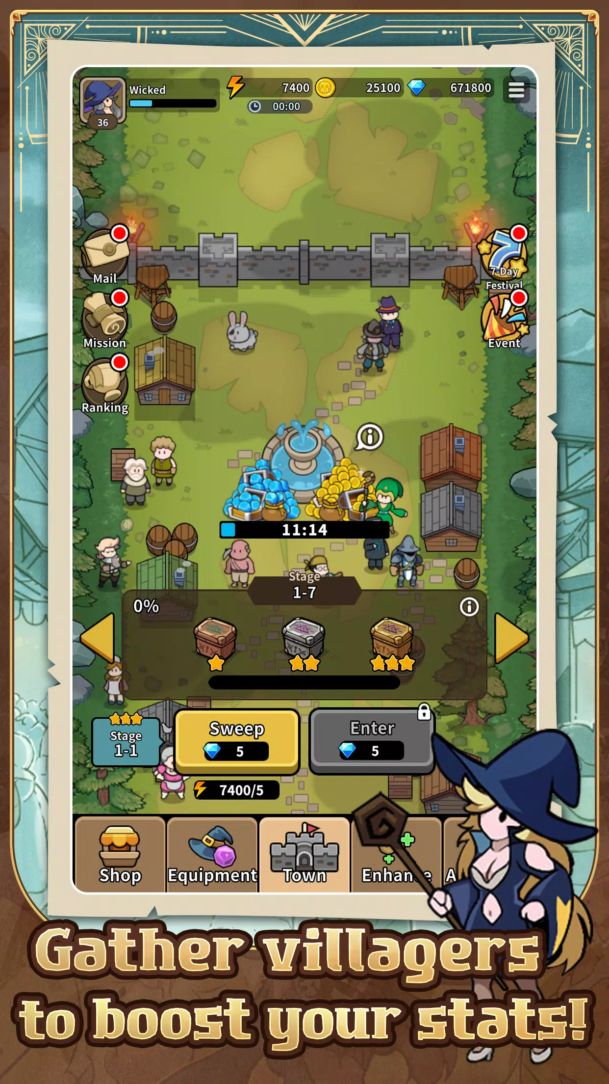村民越多,女巫就越强大。派遣她们踏上探险之旅,赢取各种奖励。