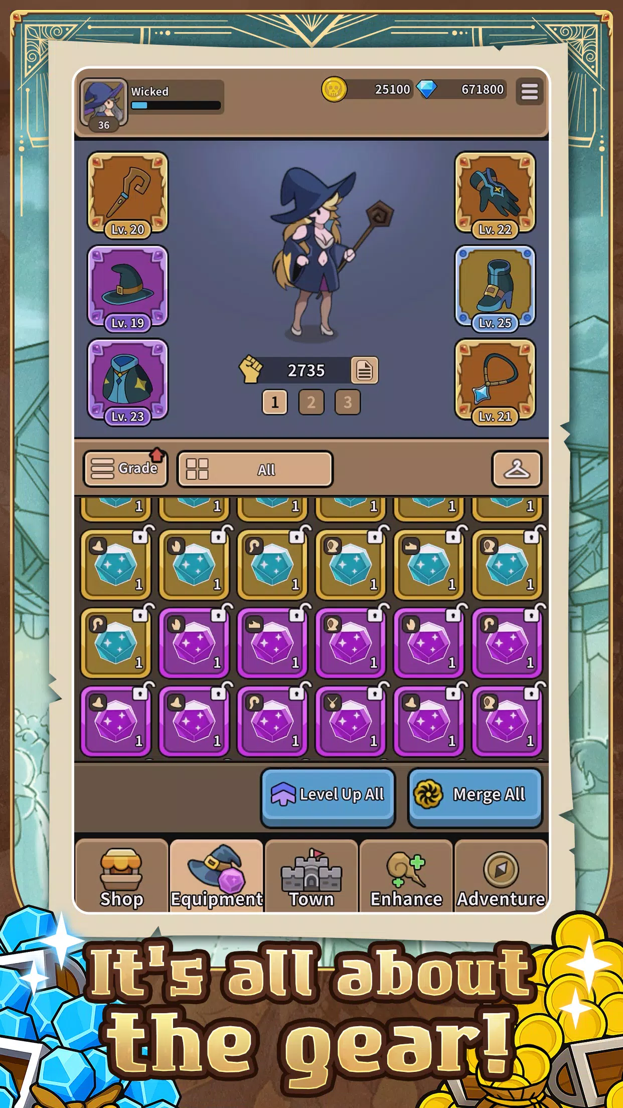 升级你的女巫装备,包括法杖、帽子、长袍等等。