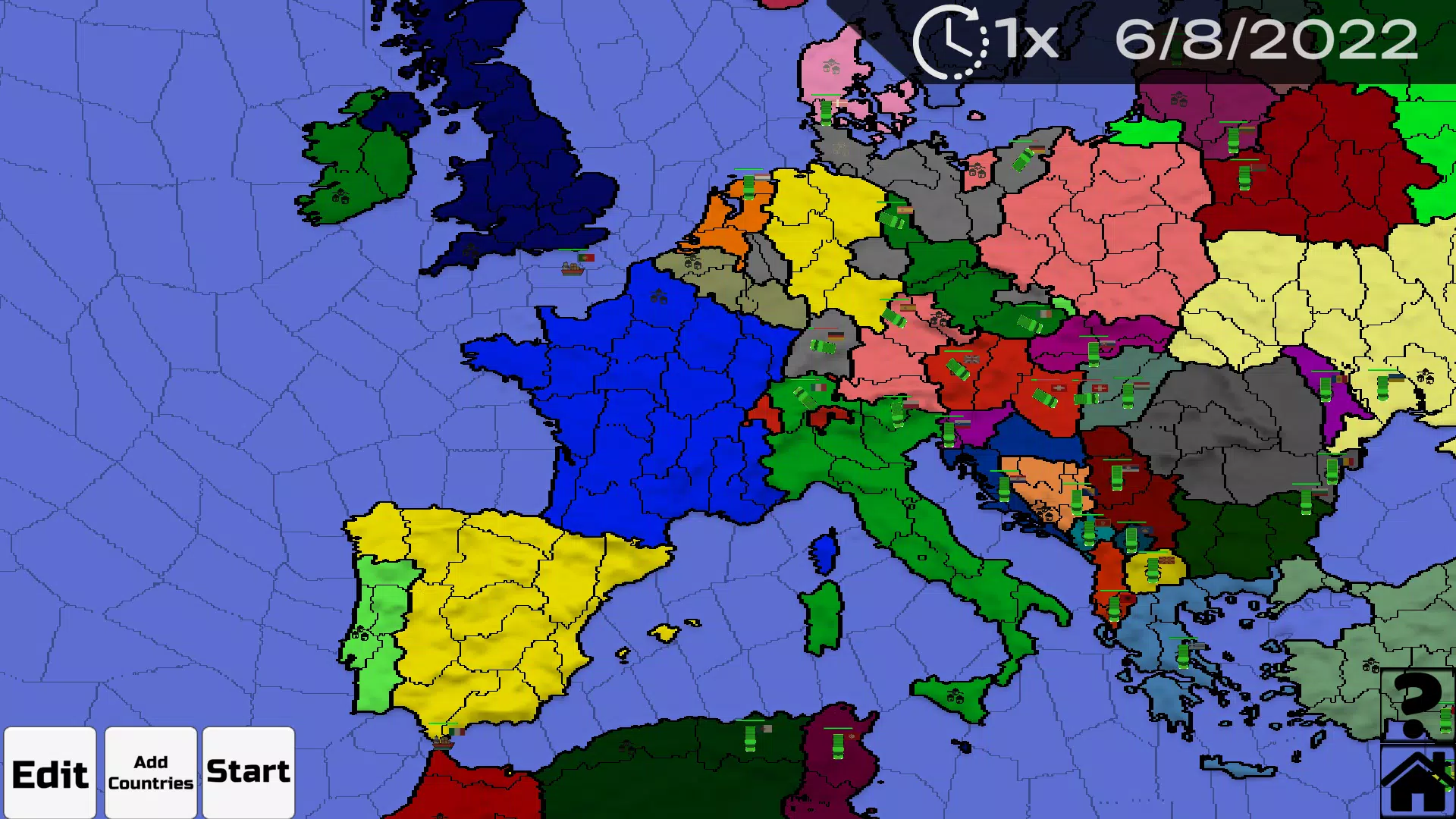 或者,您可以按照自己的喜好操纵世界。使用强大的场景规划器,选择参战的国家,看看哪个国家最终胜出!