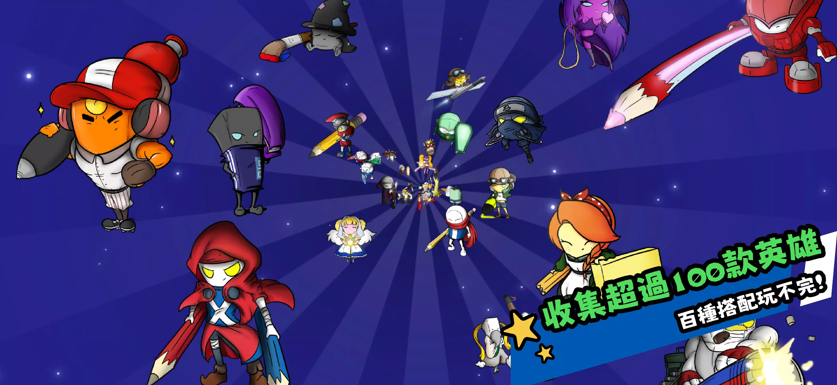 还记得小时候课桌上的橡皮擦、原子笔、尺规吗?现在它们全都「活起来」!每位英雄都拥有独特武器与力量,等你收集、进化,揭开他们鲜明有趣的个性!