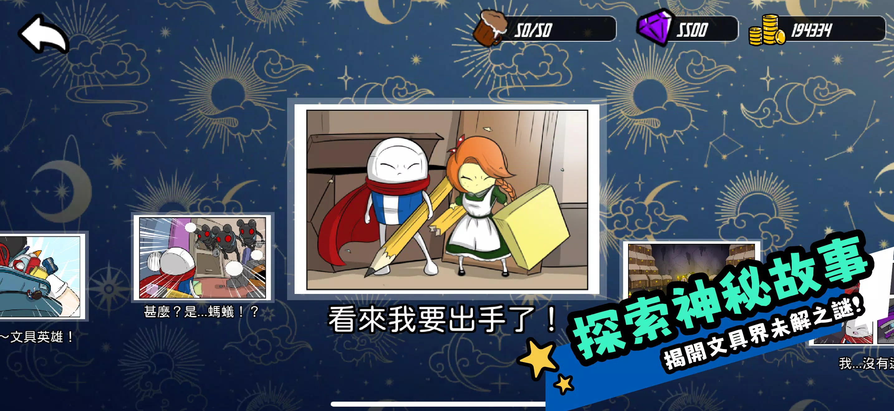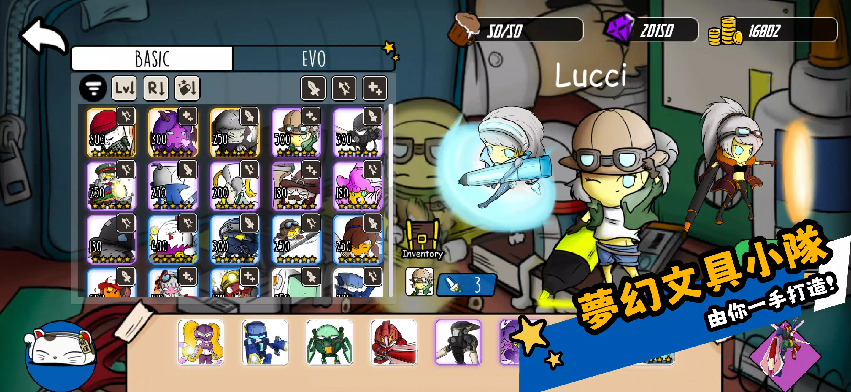 造访神秘的文具店老板娘,召唤稀有英雄,打造你的最强文具小队!