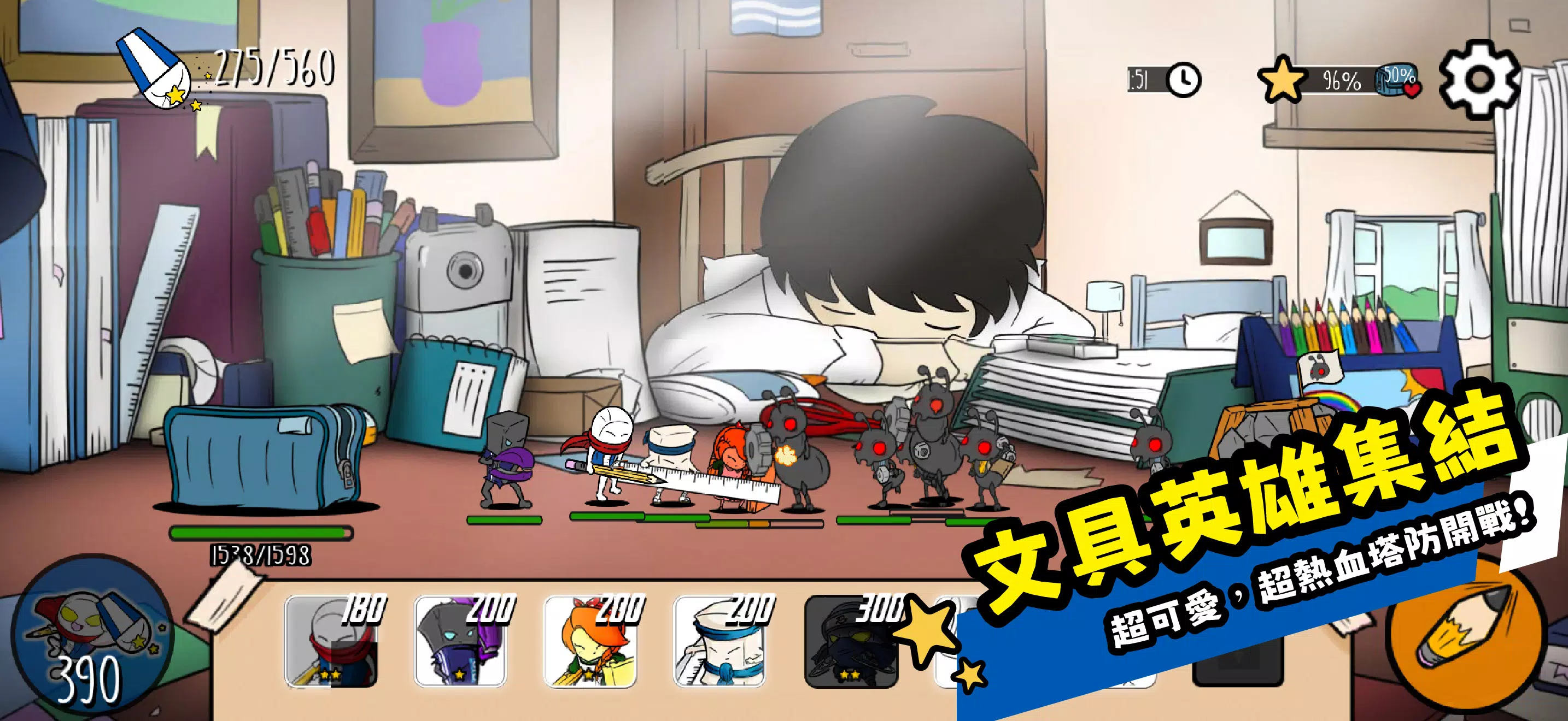 《文具英雄》是一款香港制造的免费塔防游戏,把我们童年最熟悉的原子笔、橡皮擦和尺子,全都化身为你的最强战士!