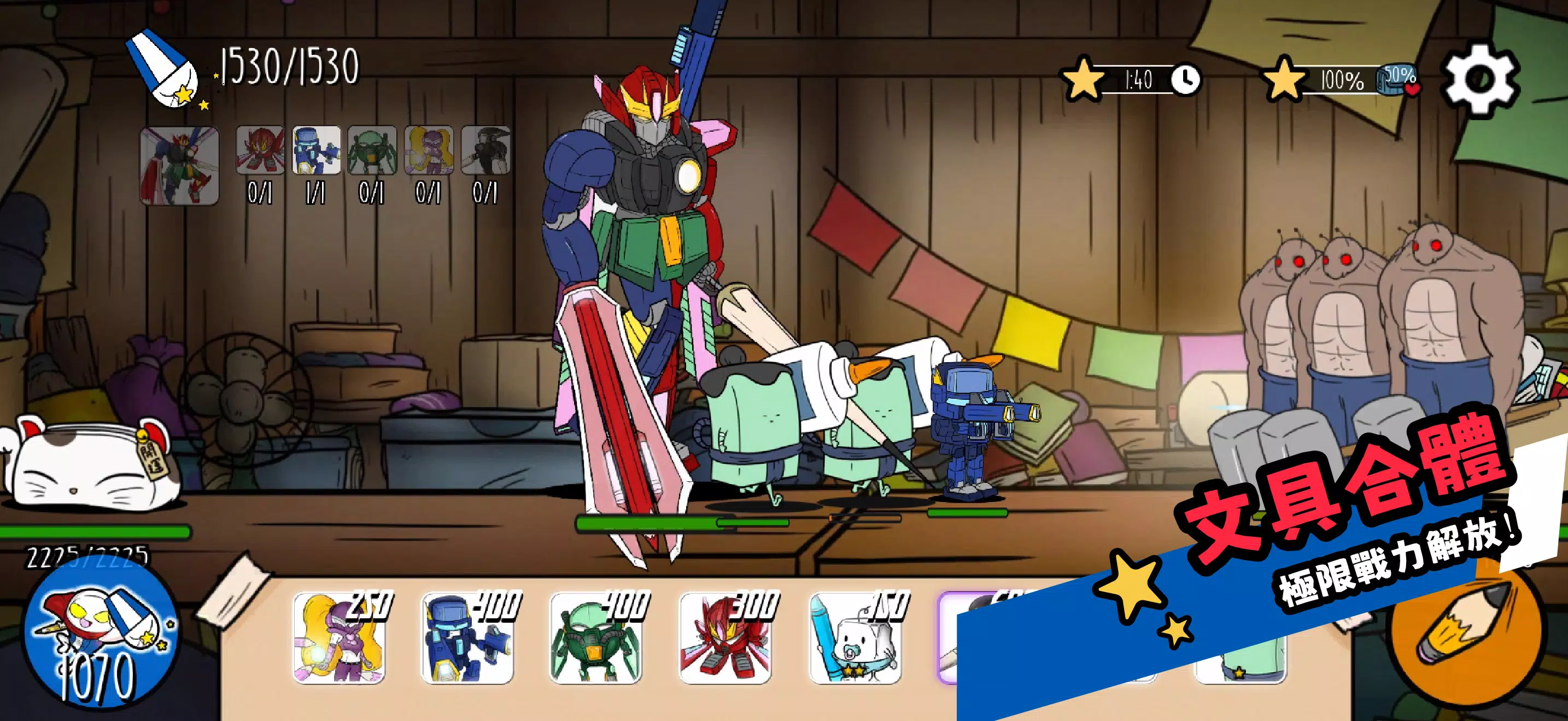 打造你的文具军团,施展巧妙策略,抵御一波又一波的敌人。超过100 位独特英雄等你收集与进化,组合出无限可能!