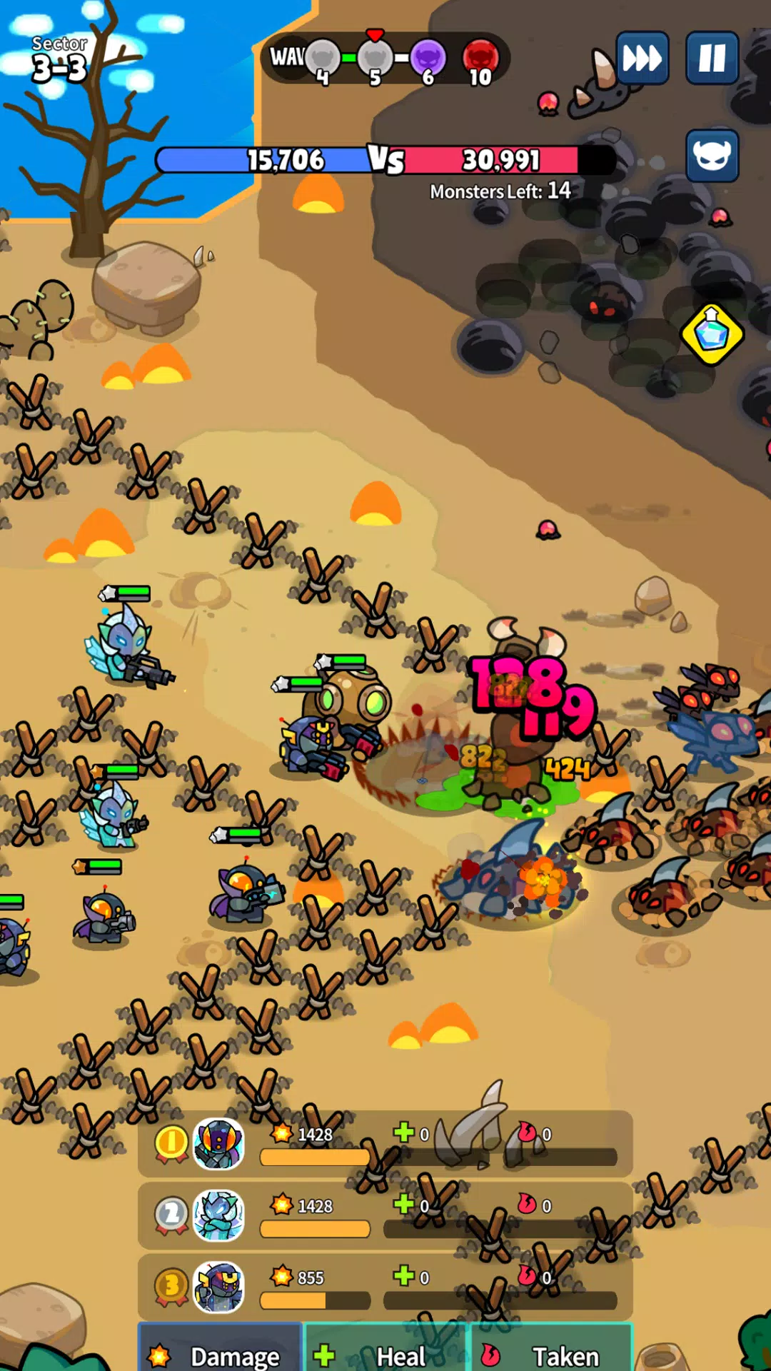每个关卡都有多波敌人。从随机英雄开始,收集资源,召唤更多英雄。在波次之间调动部队,打造最强阵容,运用巧妙的策略智胜所有怪物。