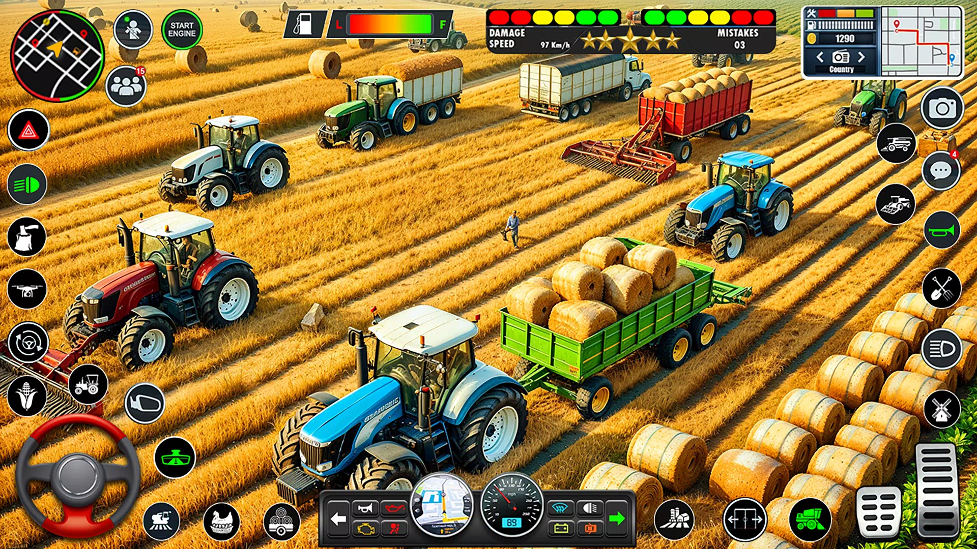 及时收割作物,并将粮食装入手推车,运送到附近的粮食市场,以便获得应有的报酬。在真实的拖拉机驾驶模拟器中,全神贯注地驾驶拖拉机,轻松舒适地完成大型拖拉机农场模拟器中的所有农业相关任务。您的拖拉机拥有无与伦比的强大动力,只需稍加努力,即可成为拖拉机驾驶游戏中的专业农民。拖拉机农场游戏的玩家友好型游戏控制为您提供了大型农场游戏的真实体验,让您能够优雅而有尊严地完成所有分配的任务。