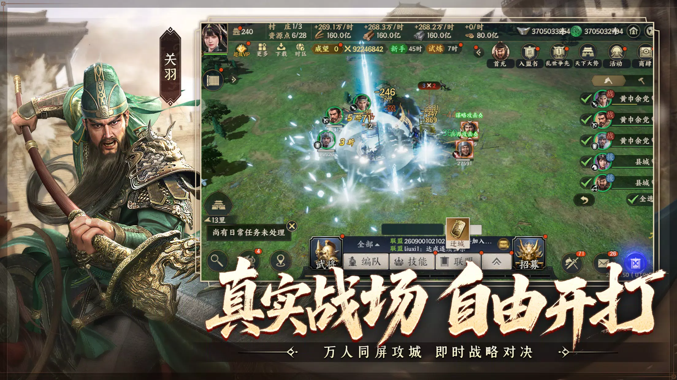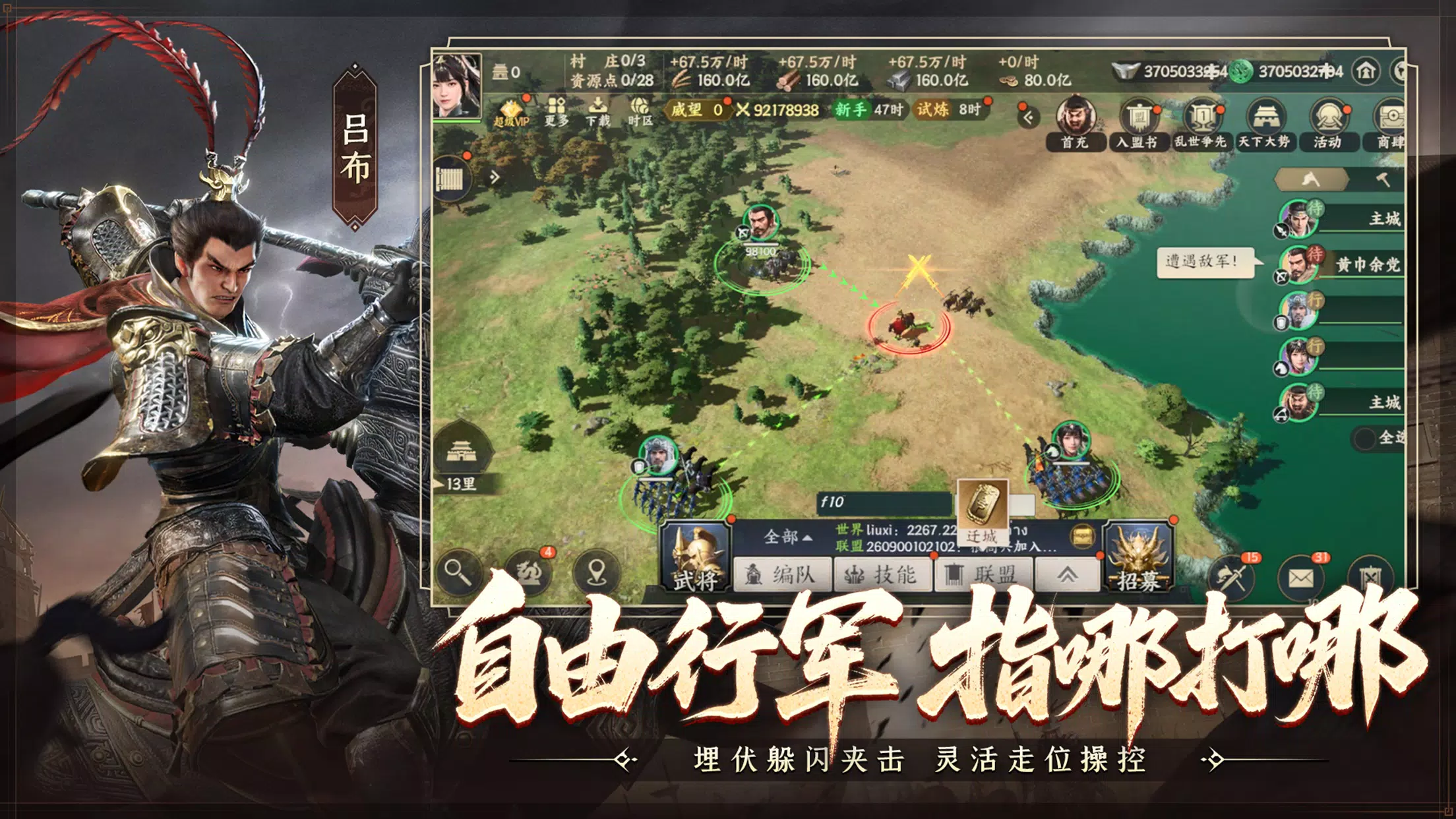 自由行军指哪打哪,你可以实时操控多支队伍的行军路线,根据战场实时情况选择埋伏、躲闪等操作,打敌人个措手不及;还可以实时加入支援盟友集火目标,多方势力同场混战,给予战斗更多的可能性。拒绝无趣的数值战报,高清3D画面呈现可视化战斗过程,每一刀、每一箭,所有战场细节皆尽收眼底!