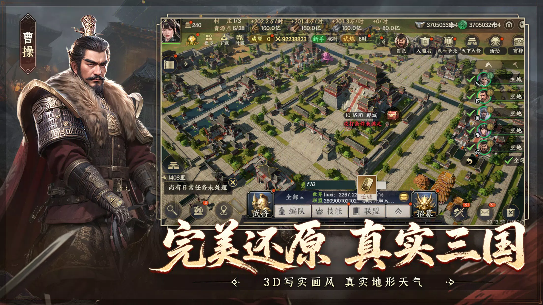 《Three Kingdoms: World Conquest》是一款真实三国即时战略SLG大作。游戏充分还原真实三国战场,高清3D展示战斗过程细节,可自由改变行军路线,运用埋伏、夹击、躲闪等实时操作,给你即时操控战斗的乐趣。同时可以体验游侠、青囊、耕师等三大职业,施展多样的职业技能去影响战局。而且游戏主打降肝减负,顶级王佐武将爆率超高,自由无损换将、换技能,自动征兵,村庄资源自产,让你轻松发展,能把时间花在战略上!现在下载还送你王佐武将-张辽和280抽!