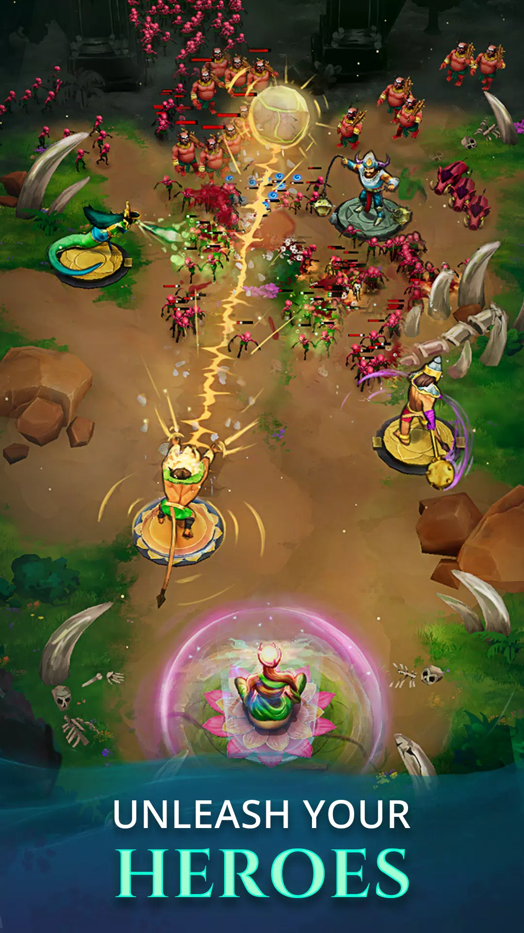🌳 守护神圣的世界之树 世界濒临毁灭。唯有卡尔帕——创世之树——屹立不倒。召唤传奇英雄,在神话般的塔防传奇中,对抗肆虐的阿修罗大军。