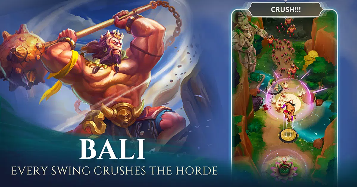 ⚔️ 指挥传奇英雄 率领巴利、苏格里瓦、阿周那等强大的战士。每位英雄都拥有源自永恒神话和古老命运的独特技能。