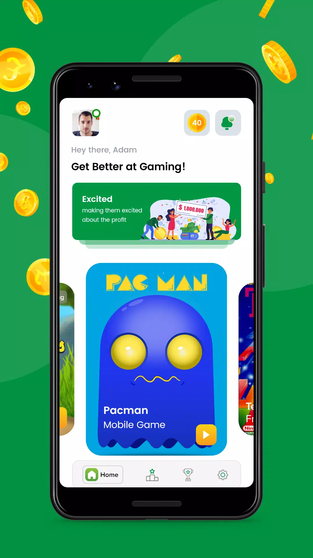Play Pound Profit – 一款真钱应用,让您通过游戏技巧赚取利润。畅玩游戏,赢取奖金,立即开始赚钱。选择您喜欢的任意一款街机游戏,在应用中与其他高手竞争,赢取现金奖励。得分最高的玩家将获得丰厚的奖金。