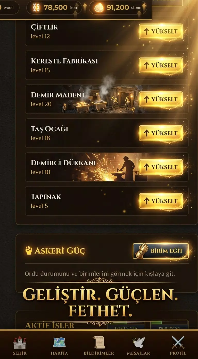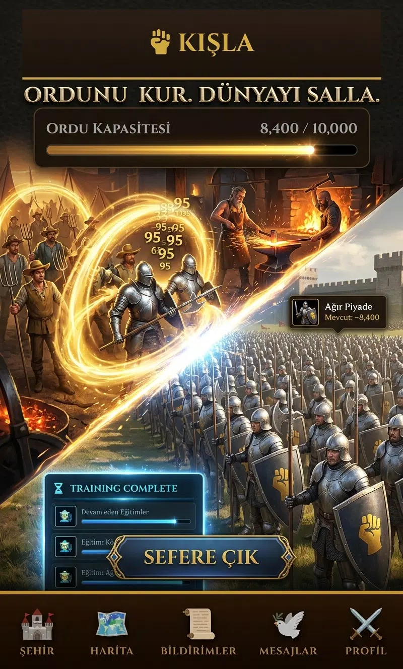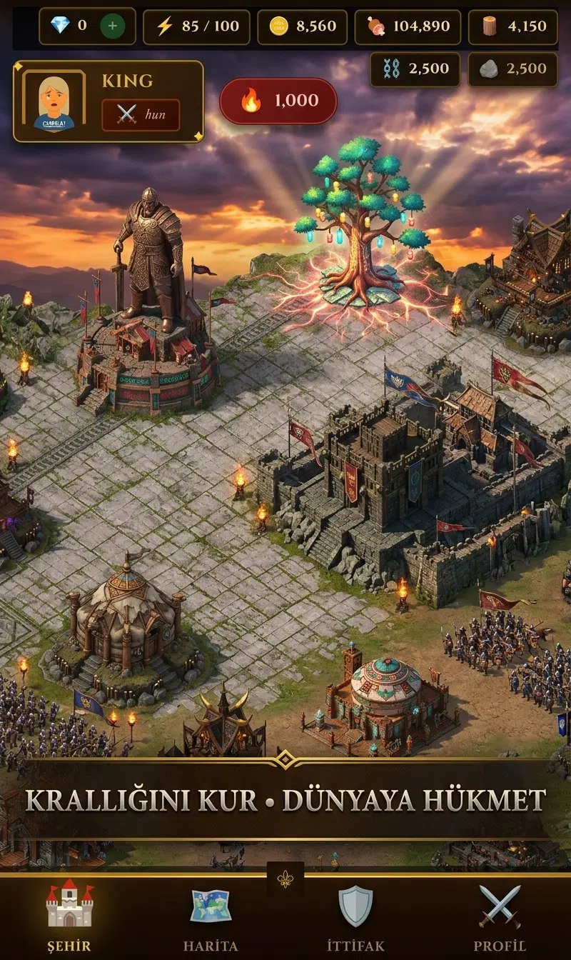 准备好改写历史了吗?在《腾格里崛起》中,建立属于你自己的帝国,统领传奇将领,将你的名字镌刻在历史的金色篇章!在这段史诗般的旅程中,你将从零开始,在残酷的中世纪土地上建立自己的帝国。你的战略智慧和军事才能将是你最强大的武器。管理你的资源,发展你的科技,将你的城市打造成坚不可摧的堡垒,带领你的军队走向胜利!外交还是战争?选择权在你手中!你可以选择与邻国缔结互不侵犯条约,走和平之路;也可以拿起战斧,扩张你的领土。通过结盟来增强你的力量,建造联盟城堡,建立共同阵线对抗敌人。记住,在这片土地上,只有强者才能生存。将传奇英雄招入你的军队