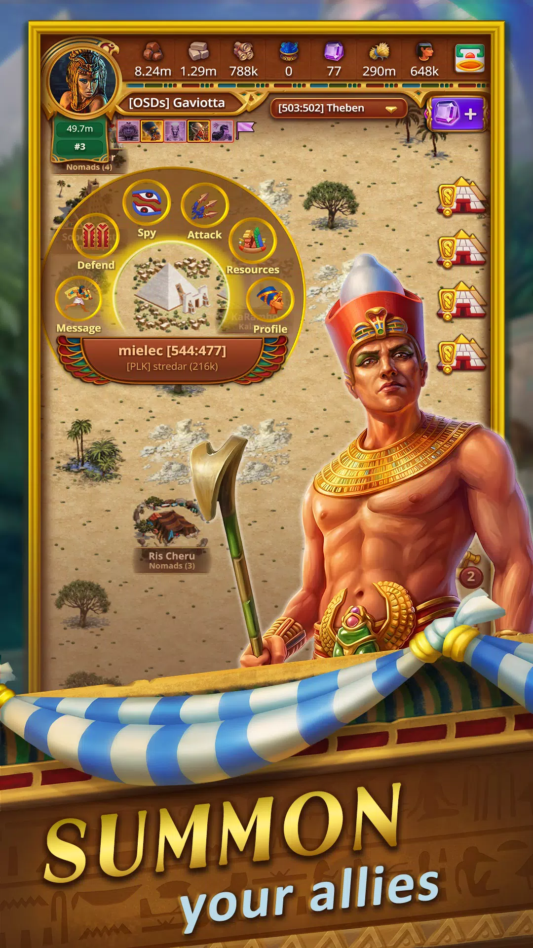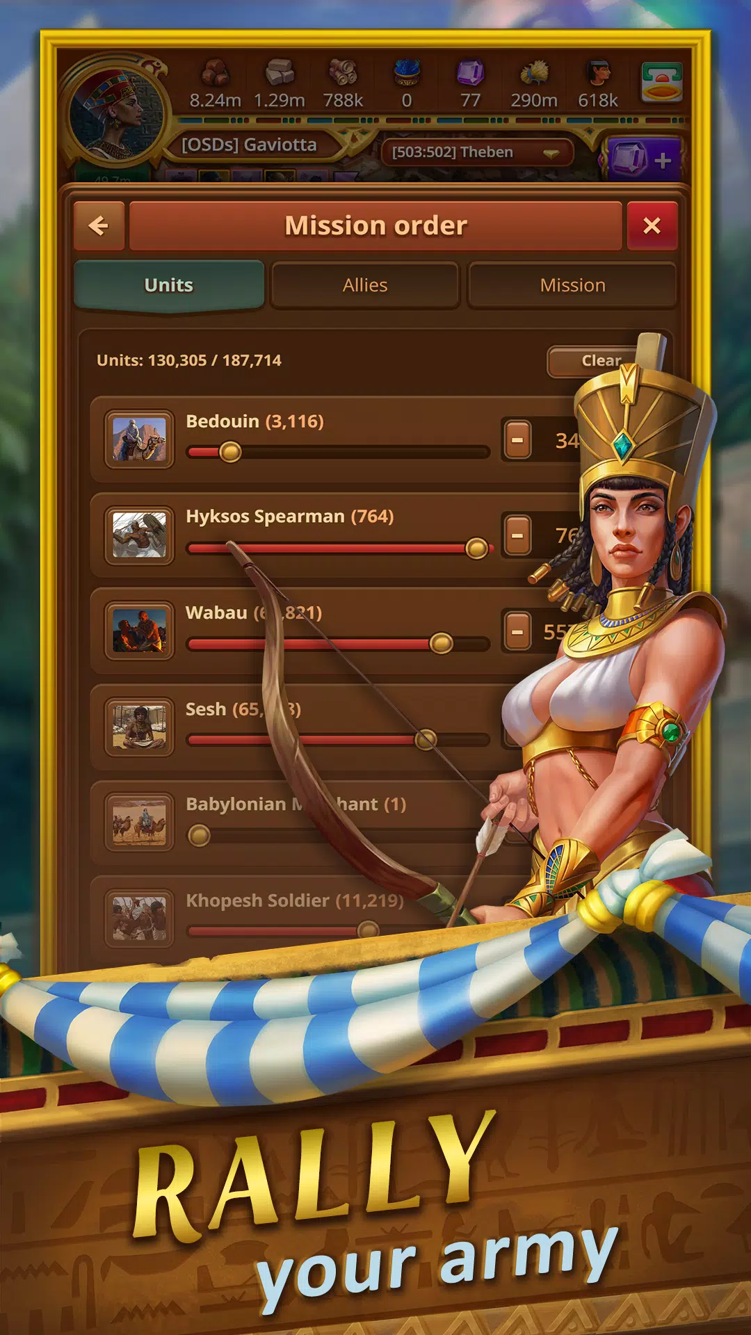 招募战车御者、梅杰伊、阿努比斯战士,并在战斗中使用阿蒙神祭司的预知能力。